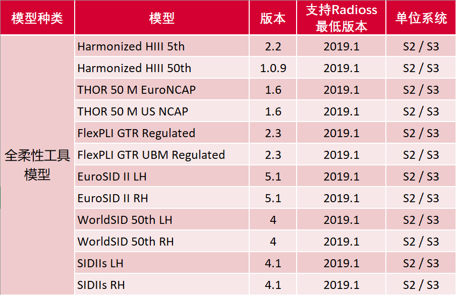 Humanetics 已開發了一系列可與 Radioss 集成的高度細節化且經過驗證的有限元假人模型。APA 計畫中提供的模型包括正面碰撞、側面碰撞、後部碰撞、兒童、頭部、腿部、行人、航空航太、軍事和人體模組假人,現在HyperWorks將逐步開放以上模型的訪問。